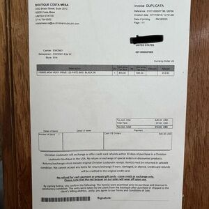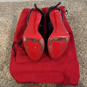 Sleek black pumps featuring iconic red soles. Includes branded box, shopping bag, dust bag and replacement tip pieces for the heels.