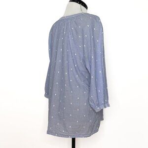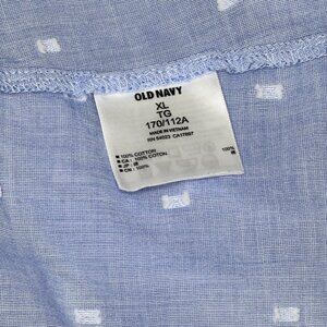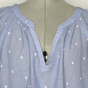 Effortless & Airy! This Old Navy popover blouse features a beautiful light blue hue with a white textured dobby (clip dot) pattern throughout. It has a relaxed, flowy silhouette that’s perfect for tucking into denim or wearing loose with leggings.