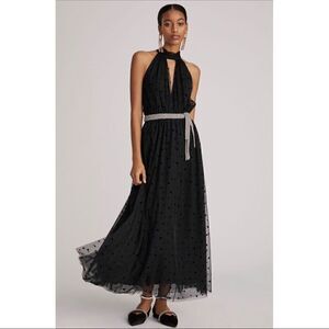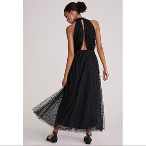 NEW Anthropologie Maeve Black Tulle Love Hearts Bodysuit Maxi Skirt Set Medium