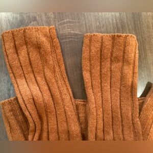 Beautiful burnt orange sweater, made of natural fibres including lambs wool and angora (rabbit hair). See picture composition tag for detailed breakdown.