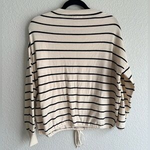 Max Studio medium Cream and Black Striped Sweater with tie drawstring waist