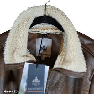 Rainforest Men's Brown Faux Leather Sherpa Lined Bomber Jacket Size Medium