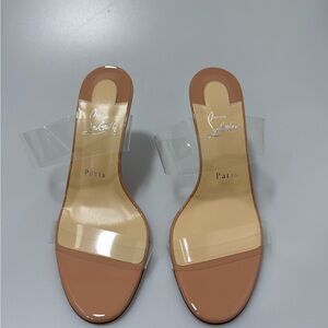 Christian Louboutin Just Nothing 85MM Patent Leather Mules Blush 38.5