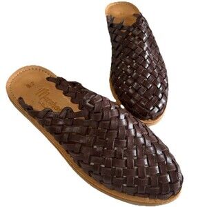 Macarena Collection Huarache Brown Handmade Leather Mexican Slide Sandals 8.5-9?