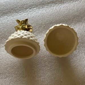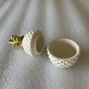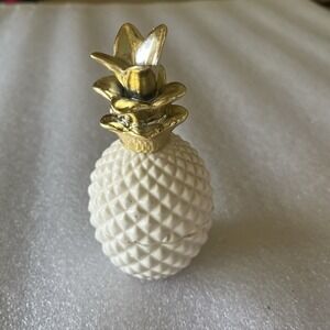 Pineapple Unique Trinket Holder Gold White Middle Opening 5.5" Tall