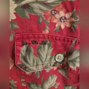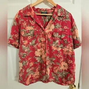 Lauren Ralph Lauren Red And Pink Floral Linen Casual Button Front Shirt Size 2X