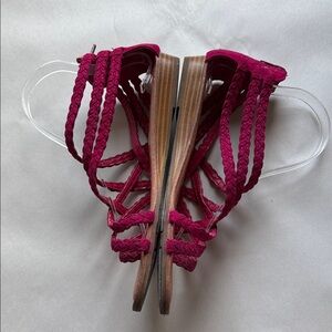 Carlos Santana Braided Leather Strappy Sandal Womens 8 magenta pink Festival