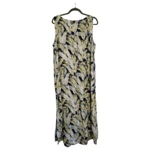 J. Jill Love Linen Tropical Palm Leaf Print Midi Sun Dress Size L