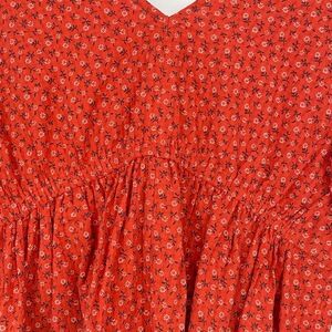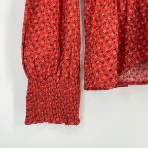 Madewell Womens V-Neck Puff Long Sleeve Peplum Cottage Core Orange Top Small