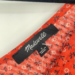 Introducing the NWT Madewell Women's Peplum Blouse in a stunning rust color. Designed with elegant long sleeves and a flattering V-neck, this blouse features intricate pleated detailing for added charm. Made from 100% cotton, it offers comfort and style, perfect for any occasion. Embrace the peplum style and elevate your wardrobe with this versatile piece.