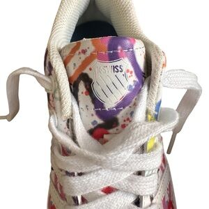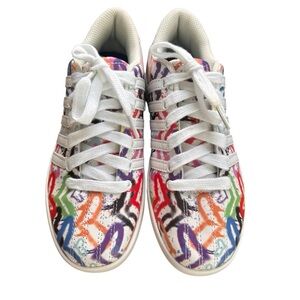 K-Swiss Vibrant sneakers with graffiti design. Features white laces and multicolor patterns. Like New. Size 3. Excellent condition. Perfect for Valentine’s Day!