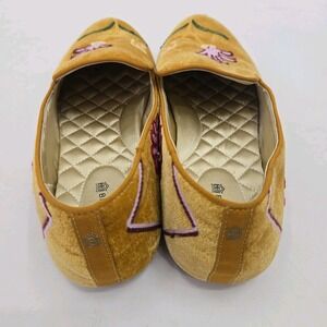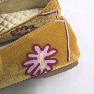 Birdies The Starling Shoes Size 10 Ocher Yellow Embroidered Velvet Flowers Flats