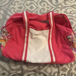 The Vera Bradley Monogrammed Duffle Bag TFA is a large, multicolor duffle bag designed for women. Made from cotton, this personalized bag features a monogram pattern and a zip closure for easy access.