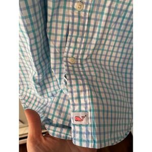 Keywords: Vineyard Vines shirt, gingham shirt, button up, collared shirt, preppy, nautical, casual wear, smart casual, summer shirt, lightweight, classic fit, long sleeve, menswear