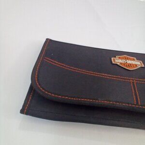 Harley Davidson Clutch Wallet Tri-Fold Zipper Pocket 10.5" x 5" Black Orange