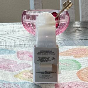 This BBW wallflower plug is designed to look like a pink cocktail with a heart-tipped arrow stirrer. The plug features adjustable scent control with high, medium, and low settings. It functions as a nightlight, lighting up 24/7 when plugged in. The device works with any Bath & Body Works Wallflowers fragrance refill, which is sold separately.