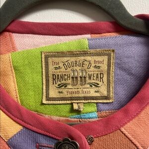 Double D Ranch Multicolor Pastel Patchwork Short Sleeve Conch Button Jacket LRG