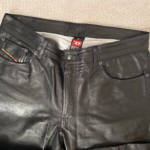 Vintage Diesel Black Leather Flare Pants Size 32