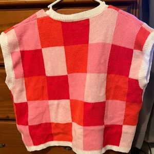 Red and Pink Checkered Sweater Vest