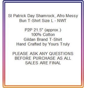 St Patrick Day Shamrock, Afro Messy Bun Custom Made T-Shirt - NWT