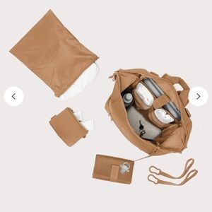See photos for description. Color is Carmel. I accidentally ordered two and missed the return window. This is the BEST diaper bag that transitions easily to an everyday backpack.