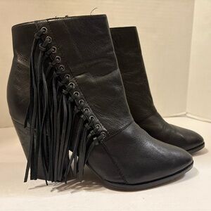 Aldo Linsey black leather fringe accented boots booties size 7.5