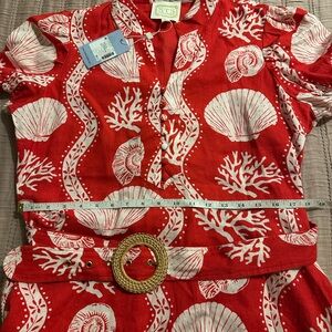 NWT SAIL TO SABLE Belted Tunic Dress in SEA STRIPE RED PRINT