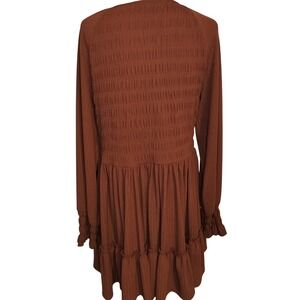 Altar State XL Rust Smocked V Neck Balloon Sleeve Tiered Ruffle Mini Dress XL