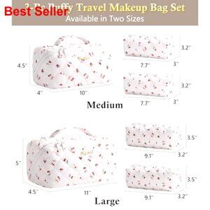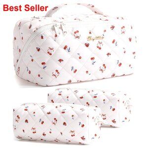 Large Capacity Travel Makeup Bag Set, 3 Pcs Quilted Water-Resistant Organizer