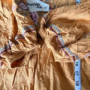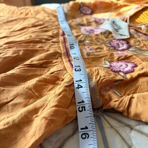 New With Tags Savanna Jane Floral Embroidered Mustard Yellow Square Neck Smocked Blouse