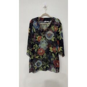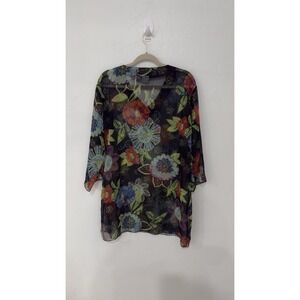 Indian Tropical Fashion black floral boho beach tunic women S/M