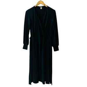 H&M Long Sleeve Surplice Neck Flare Hem Dress Suze 4 Hunter Green