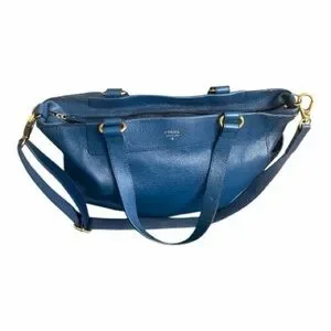 Chic Fossil shoulder bag in navy leather. Features adjustable strap and gold-tone accents. Ideal for daily use.