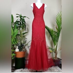 Cachet Red Lace Mermaid Formal Gown Size 4 Vintage Evening Dress Prom Dress