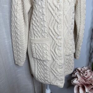 Aran Crafts Wool Cardigan Sweater Button Front White Long Women's Size Medium