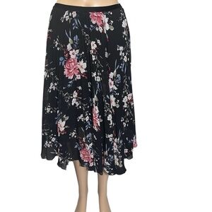 Chic A-line skirt with vibrant floral design. Features a flowing silhouette. Ideal for versatile styling.
