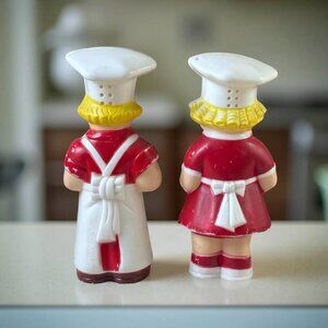 Vintage Campbells Soup Chef Plastic Salt & Pepper Shakers 4.25" Red & White With