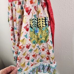 The Matilda Jane size 6 It's a Wonderful Parade Festival Tank dress is a colorful and whimsical dress perfect for summer, fall, or spring. The sleeveless design and knee-length cut make it suitable for various occasions, from casual outings to parties. The dress features a unique pattern of tents, along with character influences from Angel and Alice in Wonderland, adding a touch of charm to the overall Festival theme. Made from a comfortable cotton blend fabric, this Pullover dress is a stylish and versatile option for young girls who love to stand out.