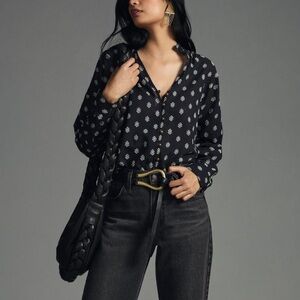 Pilcro Anthropologie Tavi Embroidered Button Down Blouse Black Size Small