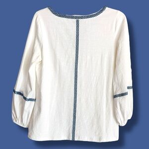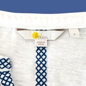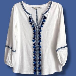 Boden Small Alison Embroidered Tassel Peasant Jersey Long Sleeve Slub Knit Top