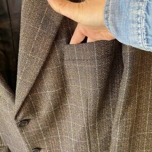 Attention to detail is evident with inner pockets for personal essentials and a wool lining for added warmth. Suitable for all seasons, from the brisk fall to the mild summer evenings, this blazer is a timeless addition to any wardrobe. Carefully designed for those who appreciate refined style, this piece demands a dry clean only for preservation.