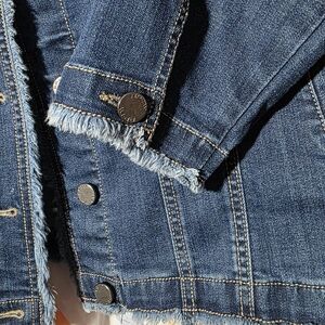 APNY Vintage Womens Distressed Frayed Blue Denim Jacket Sz XL