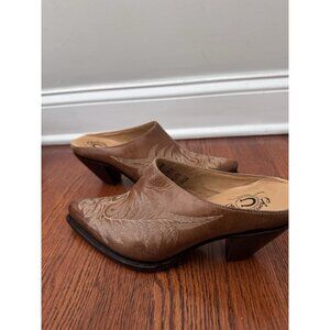 Charlie 1 Horse Leather Western Mules Tan Tolled Slip On Brazil Women 7