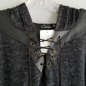 Cecico Light Weight Poncho Hoodie with Faux Leather Trim