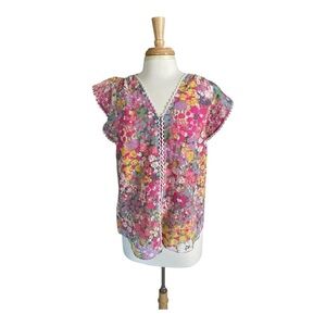 Kate Spade Floral Burnout Top | V-Neck Lace Trim Multicolor Size M