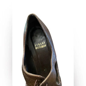 STUART WEITZMAN Cut Out Lace Up Heel Pump Oxford Metallic Bronze