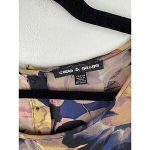 The Cable & Gauge Deep Colored Floral Blouse with Unique Ruffled Sleeves in size XL is a colorful and stylish addition to any woman's wardrobe. The multicolor floral pattern adds a pop of color, while the ruffled sleeves give it a unique and trendy touch. This blouse is designed for regular sizing and is sure to make a statement in any outfit. Perfect for adding a floral and colorful accent to your wardrobe.