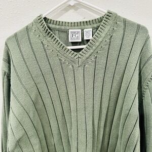 Keywords: Field Gear, mens sweater, green sweater, v neck, ribbed knit, cotton sweater, pullover, casual wear, layering piece, comfort, classic style, plus size, hunting, golf, tennis, outdoors, weekend, Preppy, collegiate, grandpa, dad, grandpacore, cottage, cabin, VTG,