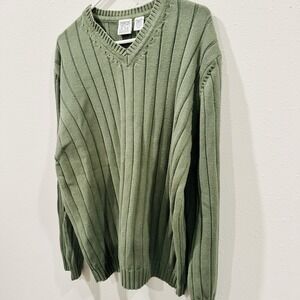 Vintage 90s Green Field Gear Men's V-Neck Ribbed Sweater 3XL Layering Preppy