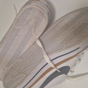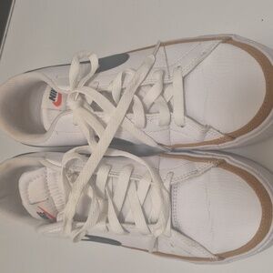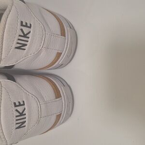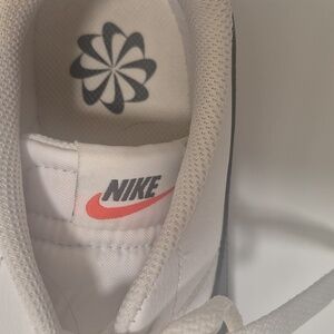 Sleek white Nike sneakers with black accents. Comfortable and stylish for everyday wear. in great shape bottoms a little ware see pics for detail.